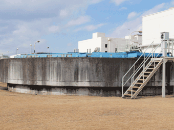 反応タンクから流れてきた水を緩やかに流し、水と活性汚泥を分離する施設です。 容量:1,200 ㎥/池 × 10池(Ⅰ・Ⅱ系)、1656 ㎥/池 × 7池(Ⅲ・Ⅳ系) 滞留時間:2.6時間(Ⅰ・Ⅱ系)、3.5時間(Ⅲ・Ⅳ系) |